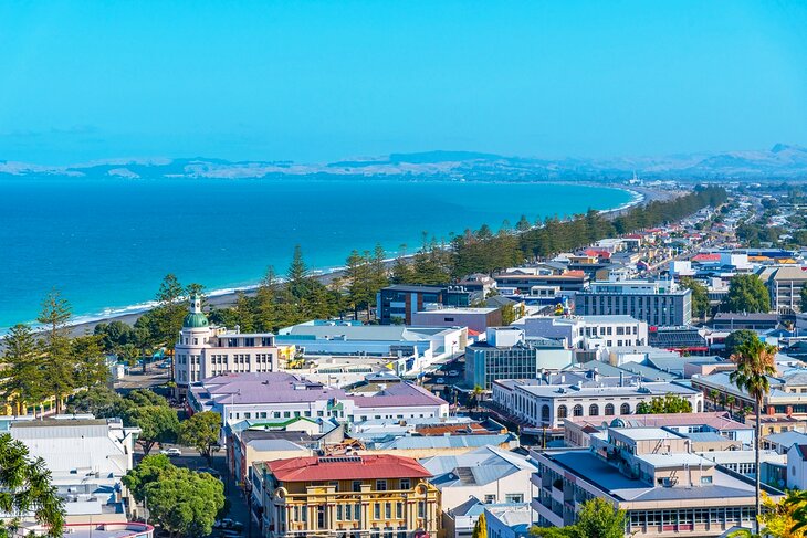 Napier (/ˈneɪpiər/ NAY-pee-ər; Māori: Ahuriri) is a city on the eastern coast of the North Island of New Zealand and the seat of the Hawke’s Bay region. It is a beachside city with a seaport, known for its sunny climate, esplanade lined with Norfolk pines, and extensive Art Deco architecture. For these attributes, Napier is sometimes romantically referred to as the “Nice of the Pacific”.